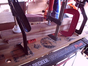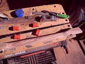 Also I have several Thin slices of the Beli left over from Trimming the neck which i decide to laminate together with a thin strip of Bubinga to form the top. This is really going to compliment the neck and headstock.