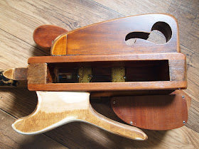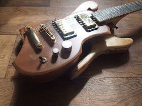 Also it will be fitted out with 2 Humbuckers and gold Hardware. I like the fact that on first glance it looks like some super expensive boutique guitar but then you look closer and realise it's made from bits of old furniture and various offcuts.