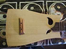 It is for a commission and it was originally going to be a cigar box guitar which it actually turned out to be. Unfortunately for some reason I decided to put an angle on the neck to body joint and miscalculated it somewhat. I ended up with a bridge saddle that was nearly an inch high. looked ridiculous and was leaning over due to the string tension. There was no other option but to give up. After a bit of a discussion with the customer we decided to build a new body. so I didn't want to just build a standard shape so decided on a funky shape not a million miles away from a box but hopefully with a bit more comfort and a better sound.