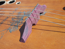 hand carved Bubinga Bridge with hand carved corian Compensated saddle