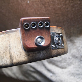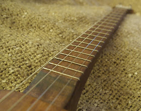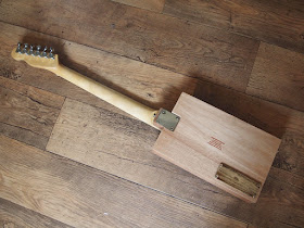 This build went incredibly well. the only problems I had was applying the finish as the temperature had dropped considerably during November and I had to wait longer between coats for the stain to dry and I had promised the guitar to be finished and delivered by mid December. It was good in the end and I just managed to do it. the great thing was when I first strung it up it was almost perfect requiring only a slight fret dress and lowering of the bridge. I had a concern that the neck being as fat as it was would be too straight but somehow (luck rather than judgement methinks) it had perfect relief.