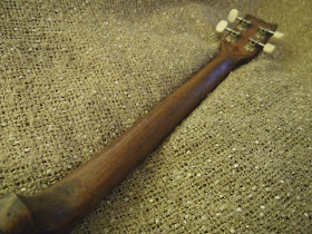The original H44 fret board joins on top of the body which doesn't leave much room for adjustment. and doesn't leave much string break angle on the bridge. I reduced the body part of the maple approx. 4mm lower than the neck (not including the fretboard). It looks like a glued in neck but it is all one piece.