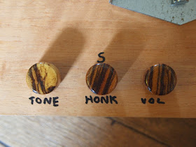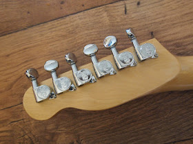 Kluson 3 on a plate machine heads with white buttons. The only ones that where going to look right. The Customer wanted the basic square headstock which I had done on the firewood special.