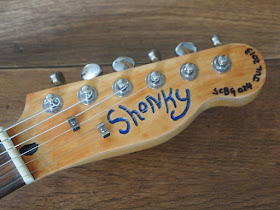 The whole guitar has been given the ShonKy Antique finish looks great against the pearl.