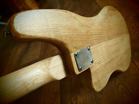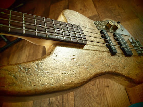 A friend commissioned a bass guitar for there partner to learn on. the only trouble is I've had a week to build something. Luckily I have a few Bass spares in so didn't have any trouble there well all apart from a body so I made one from Ash with a OSB top. The OSB came from neighbors shed and is about 20 years old so needed a bit of stabilising and filling. I have some modern OSB and it looks to be much more solid.