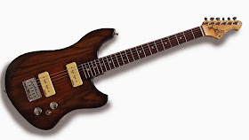and 2 p90's. This is designed as a workhorse guitar for the gigging musician. although the body is quite heavy it is also a bit smaller than an average guitar so the weight is kept down. You may notice that that the bridge is set quite far back on the body. (Not so much on my own model above as it had 24 frets and 25" scale.)