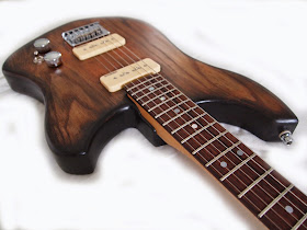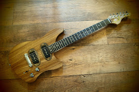 If you read this blog regularly you may remember my Novus prototype..  I didn't post it but I made another one for myself with locally scourced ash and a zebrano top. Ebony fretboard with stainless steel frets and square fret markers.