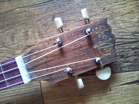 One I built sometime ago for a commission but neglected to post was this lovely large boxed Uke. I actually made the box as the customer wanted it to look old and worn and split and it was a whole lot easier to purpose build one than do the aging to an existing box and of course a box that was naturally like that would be completely useless and unstable.