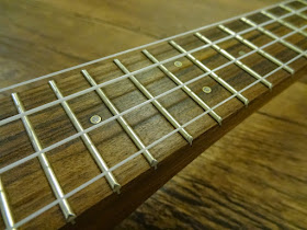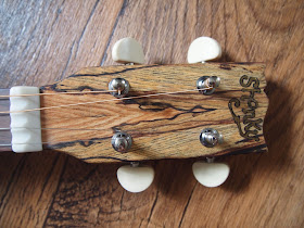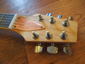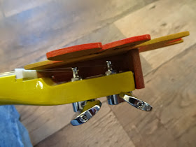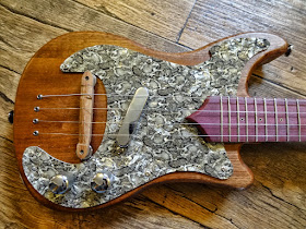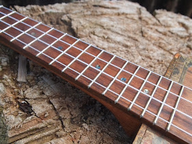 So It's all built and strung up how does it play and sound? Actually it's quite nice to play the body has a natural knee rest and is nicely balanced. I have left the fitting of strap pins if required up to John. The neck is a quite chunky C profile so sits in the hand nicely. John is mainly a slide player so it it has been tuned up to open D with a fairly high action. The Little pickup delivers a really pleasing tone Nice and crisp on a clean setting with a tight overdriven tone with gain.