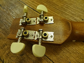 Laugh though you may It did throw up some challenges in the build. When I started to draw it out I realised the original design was a little out scale wise for a tenor, (More in keeping with a Uke) If I had kept to the relative dimensions it would have been huge so I had to really re-design the shape to keep it a manageable size, even then the shape was quite a handful as I didn't have luxury of a nice template. I made up a rough one out of some old plastic advertising board but it wasn't really firm enough to do a good job especially around the feet. It was good enough though. I also splayed the legs a little more to get a more flying V effect and I think it makes for a more comedic posture.