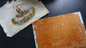 The first thing to do is to remove as much as possible the labels from inside the box that are in areas that will have other parts glued to them. It may be ok to glue on top of the labels but sometimes the paper is folded or may have thicker glue or might be old and not be actually adhered that well so I prefer to avoid the risk and go for wood to wood gluing. I use a chisels, scrapers and sandpaper.