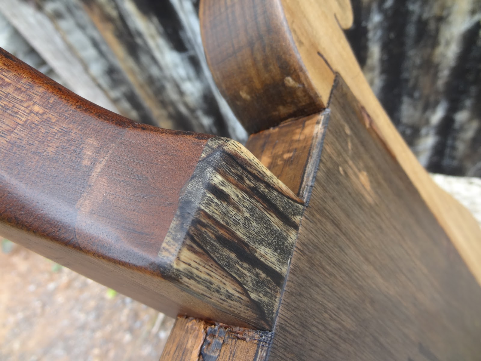 I thought I would revisit my ornate scroll designs for this Tenor guitar using a vintage Grand Nica Cedar cigar box with reclaimed Elm wings. (complete with woodworm Holes).